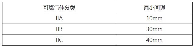 1.14 安裝設(shè)備時(shí),應(yīng)注意防止隔爆接合面與固體障礙物(如鋼架、墻、護(hù)套、安裝板、管道或其他電氣設(shè)備)之間的距離不小于下表規(guī)定的數(shù)值,試驗(yàn)證明隔離距離可以更小的除外。